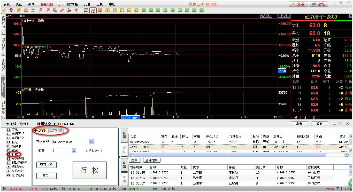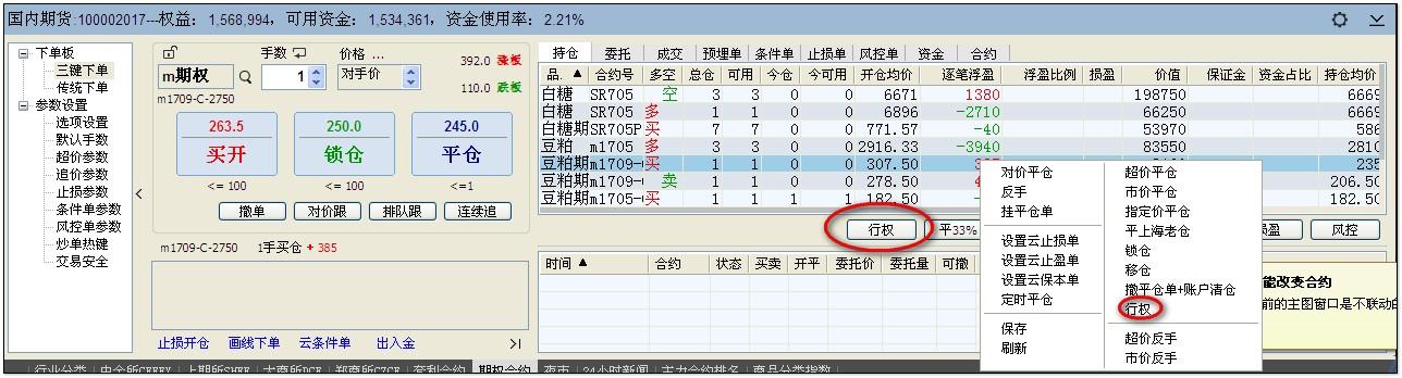 6、在博易大师软件下单界面选择“f7行权”按钮,进入行权操作界面,选择要行权的期权持仓,输入行权要素,点击行权即可。